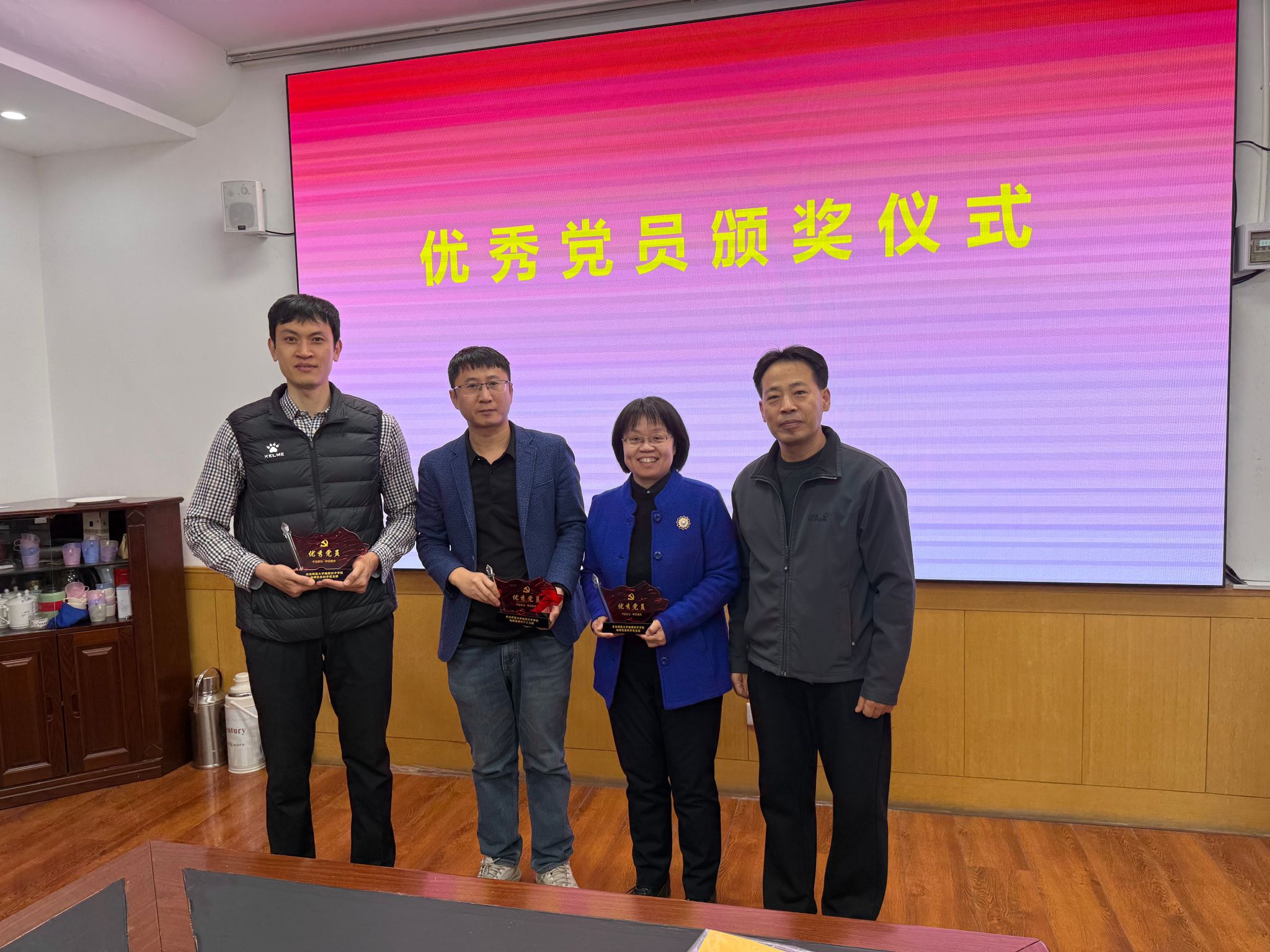 会议首先举行了2025年度优秀党员教师颁奖仪式。卜兆君书记为黄方、孙仲秋、赵建军三位老师颁发优秀党员奖杯,表彰他们在党建工作中的突出表现,激励全系教师以先进为榜样,立足岗位、争先创优。