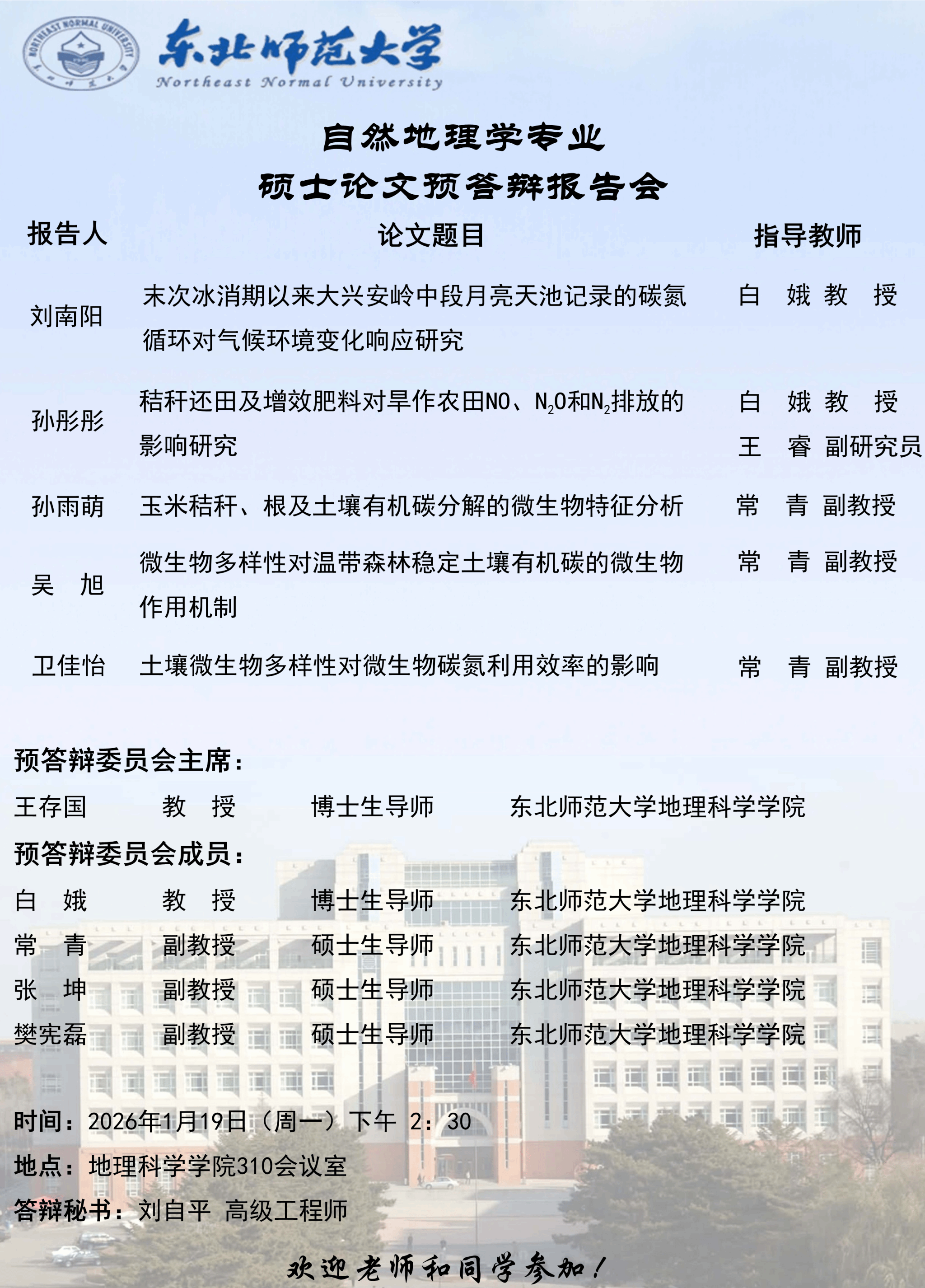 【硕博答辩】自然地理学专业硕士论文预答辩报告会