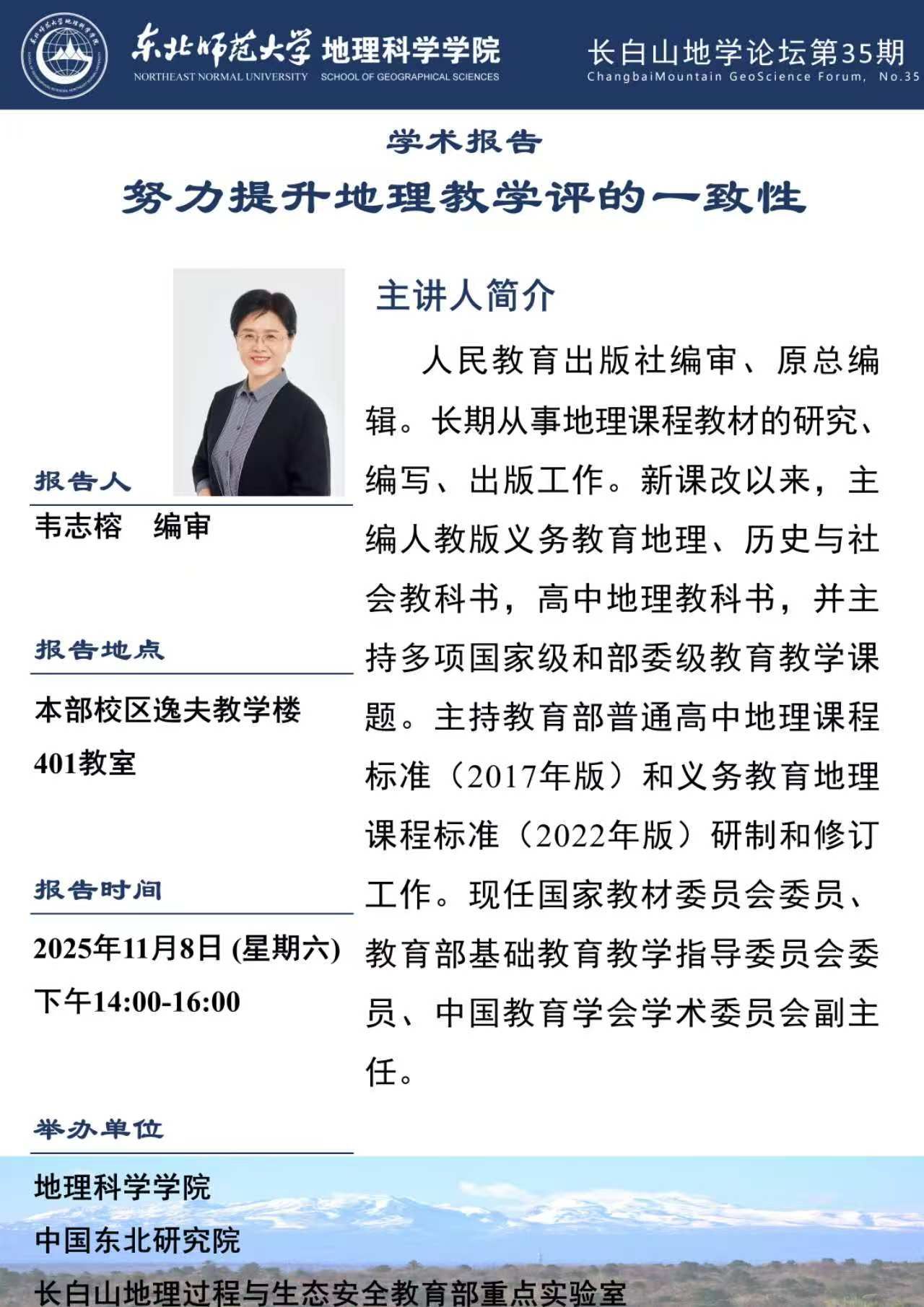 【长白山地学论坛(第三十五期)】韦志榕:努力提升地理教学评的一致性